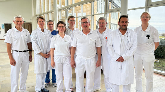 Zum erweiterten Behandlungsspektrum zählen unter anderem die Therapie arterieller und venöser Erkrankungen, die kompetente Versorgung chronischer Wunden sowie eine eigene angiologische Sprechstunde. Ein weiterer Schwerpunkt liegt in der Shuntchirurgie – von der Planung und Anlage bis zur Revision von Dialyseshunts für Patientinnen und Patienten mit Nierenerkrankungen. „Den Patientinnen und Patienten unserer gefäßmedizinischen Abteilung können wir die Gesamtheit der konservativen, kathetergestützten und operativen Therapie von Gefäßerkrankungen anbieten“, betont Patrick Paulsen, neuer Chefarzt der Klinik für Gefäßchirurgie und Angiologie. Unterstützt wird er durch den Leitenden Oberarzt Dirk Luhowy, den Leitenden Arzt der Angiologie, Ansgar Leidinger, sowie die neuen Oberärztinnen Dr. Caroline Brinker und Dr. Kerstin Schöllermann. Das erfahrene Team wird ärztlicherseits durch die bereits in der Klinik tätigen Oberärzte Dr. Wiebke Grasmeier und Dr. Karsten Köppe komplettiert.