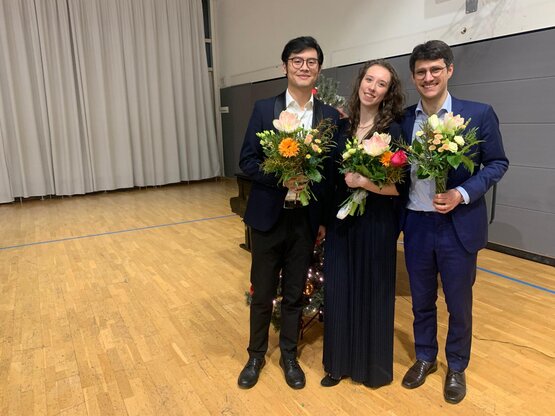 Am Abend des 22.12.2025 fand die diesjährige Weihnachtsoperngala vor der bis zum letzten Platz gefüllten Aula mit über 300 Besuchern statt. Auf der Bühne standen der aus Taiwan stammende Bariton Yu-Chi Juan, die Mezzosopranistin Sophia Hillert aus Nürnberg sowie der Pianist Nathan Harris, der in Mannheim und München aktiv ist. Gemeinsam präsentierten sie ein abwechslungsreiches Programm mit Arien, Duetten und weihnachtlichen Liedern – von Wolfgang Amadeus Mozart bis Richard Strauss.